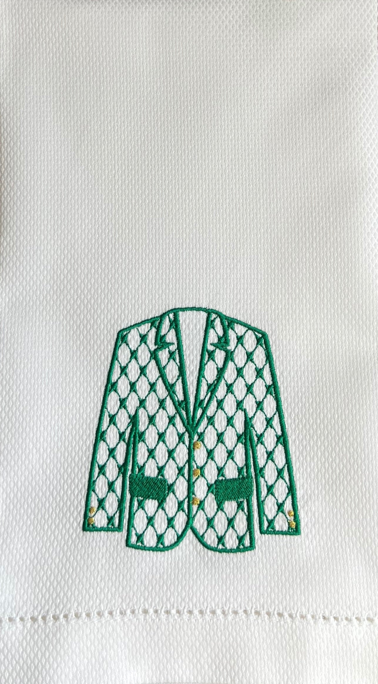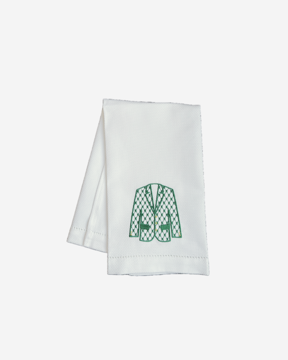 Okay, stop everything—because this hand towel is major. A crisp, white beauty embroidered with the most adorable take on the iconic Masters Green Jacket. It’s golf chic, it’s Augusta energy, it’s hostess-unlike-any-other.