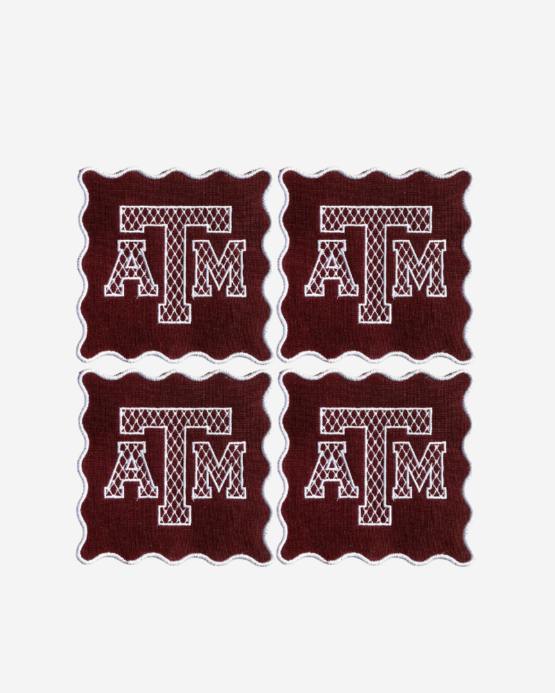 Classic, perfectly-embroidered Texas A&M cocktail napkins. This beauty is stitched on signature Aggie maroon linen. Whether you’re hosting a game day watch party, gifting your favorite Texas A&M fan, or just making your space feel a little more put together, these cocktail napkins are here for it.
