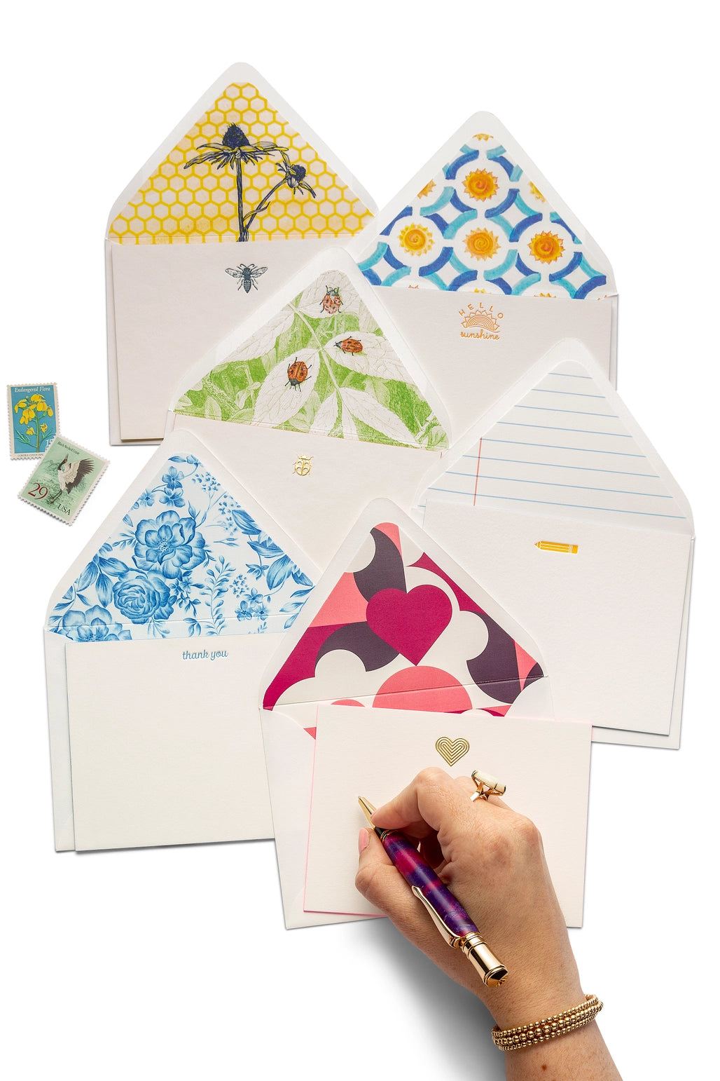 - Six 4.25” x 5.5” double thick flat letterpress cards with edge paint